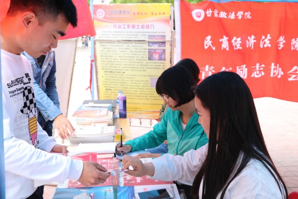 志愿者们向前来购买咨询的同学悉心讲解(甘肃政法学院供图)