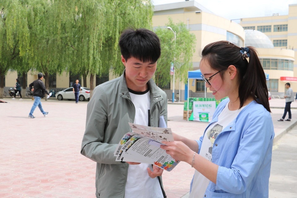 志愿者向路过的同学宣传本次义卖活动(甘肃政法学院供图)